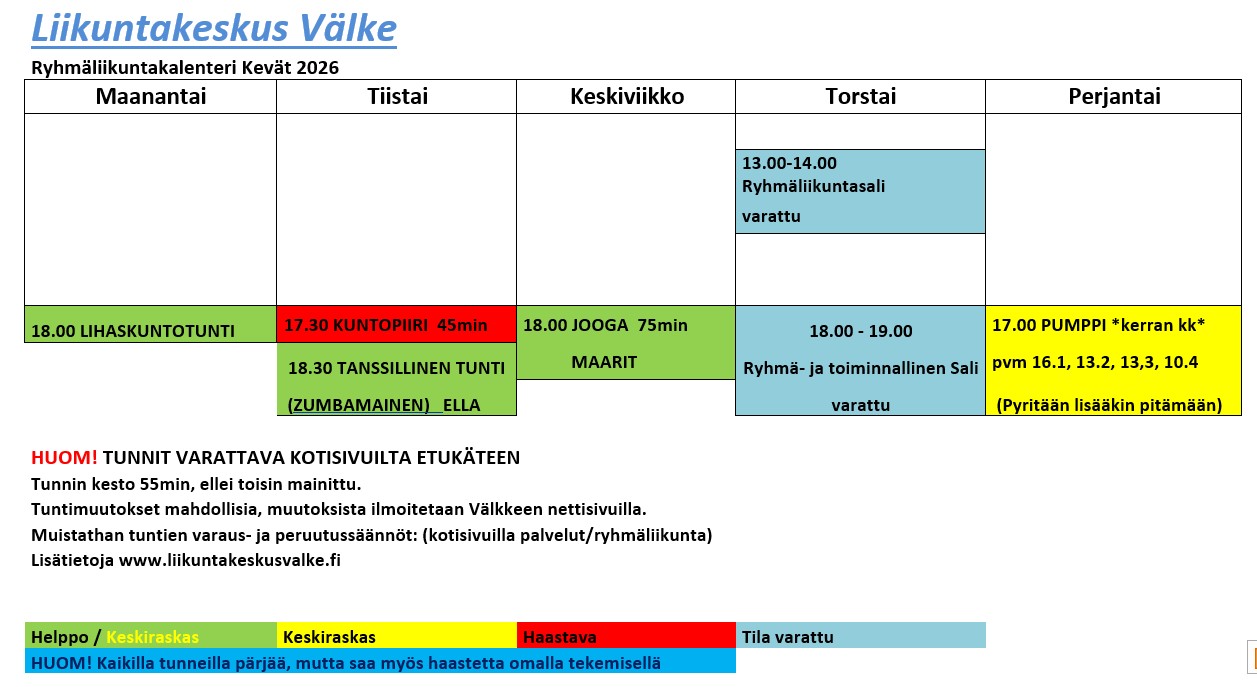 mennessä. Ryhmäliikuntatunnit pitää varata viimeistään 3 tuntia ennen tunnin alkua.